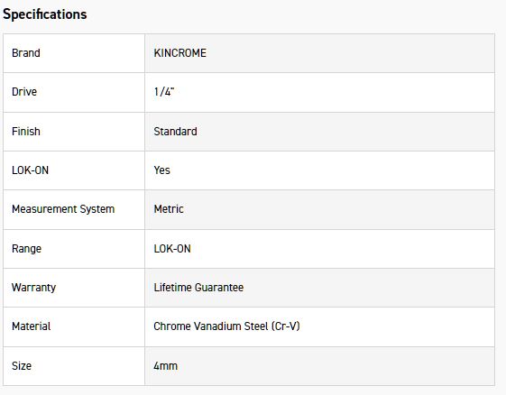 KINCROME K25040 LOKON SOCKET DEEP 1/4DR 4MM