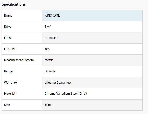 Kincrome LOK-ON™ Sockets, Sets and Accessories have been engineered beyond world-class benchmarks, exceeding all international torque and lifetime standards. Offering unique patented features such as the LOK-ON™ Socket’s ability to loosen up to 85% rounded/damaged fasteners, the LOK-ON™ range has been developed with both function and style in mind. Each component within the LOK-ON™ range includes features above and beyond the market’s expectation, setting a new benchmark for the professional quality tool industry.
