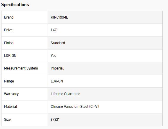 KINCROME K25063 LOKON SOCKET DEEP 1/4DR 9/32