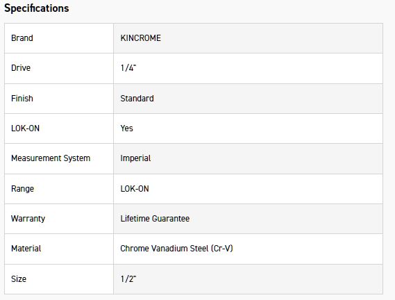 Kincrome LOK-ON™ Sockets, Sets and Accessories have been engineered beyond world-class benchmarks, exceeding all international torque and lifetime standards. Offering unique patented features such as the LOK-ON™ Socket’s ability to loosen up to 85% rounded/damaged fasteners, the LOK-ON™ range has been developed with both function and style in mind. Each component within the LOK-ON™ range includes features above and beyond the market’s expectation, setting a new benchmark for the professional quality tool industry.