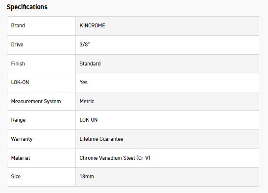 Kincrome LOK-ON™ Sockets, Sets and Accessories have been engineered beyond world-class benchmarks, exceeding all international torque and lifetime standards. Offering unique patented features such as the LOK-ON™ Socket’s ability to loosen up to 85% rounded/damaged fasteners, the LOK-ON™ range has been developed with both function and style in mind. Each component within the LOK-ON™ range includes features above and beyond the market’s expectation, setting a new benchmark for the professional quality tool industry.