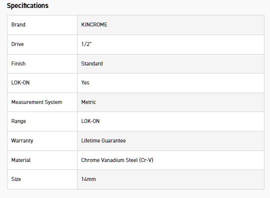 Kincrome LOK-ON™ Sockets, Sets and Accessories have been engineered beyond world-class benchmarks, exceeding all international torque and lifetime standards. Offering unique patented features such as the LOK-ON™ Socket’s ability to loosen up to 85% rounded/damaged fasteners, the LOK-ON™ range has been developed with both function and style in mind. Each component within the LOK-ON™ range includes features above and beyond the market’s expectation, setting a new benchmark for the professional quality tool industry.