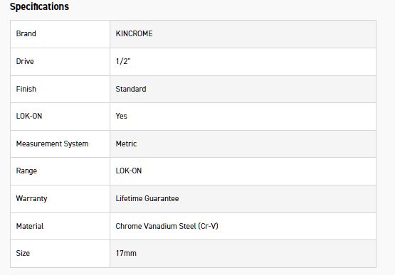 KINCROME K26169 LOKON DEEP SOCKET 1/2DR 17MM