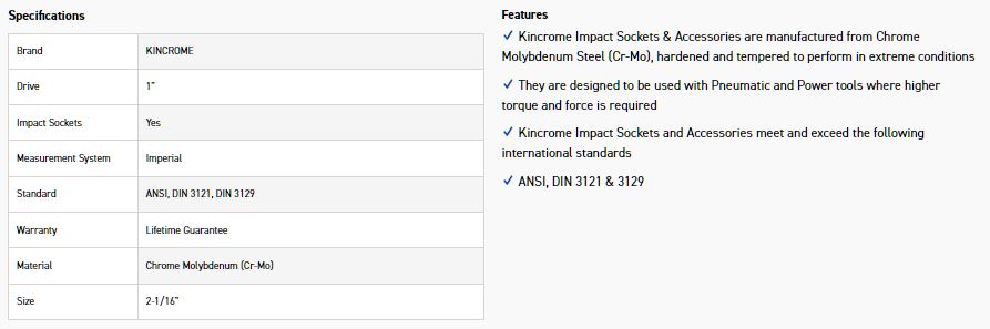 Kincrome Impact Sockets & Accessories are manufactured from Chrome Molybdenum Steel (Cr-Mo), hardened and tempered to perform in extreme conditions