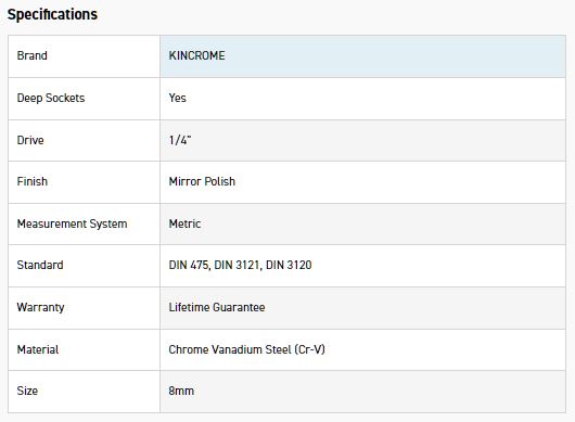 KINCROME K26504 SOCKET DEEP 1/4DR 8MM (MP)