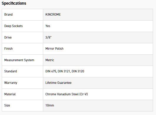 KINCROME K26552 SOCKET DEEP 3/8DR 10MM (MP)