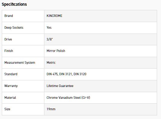 KINCROME K26561 SOCKET DEEP 3/8DR 19MM (MP)