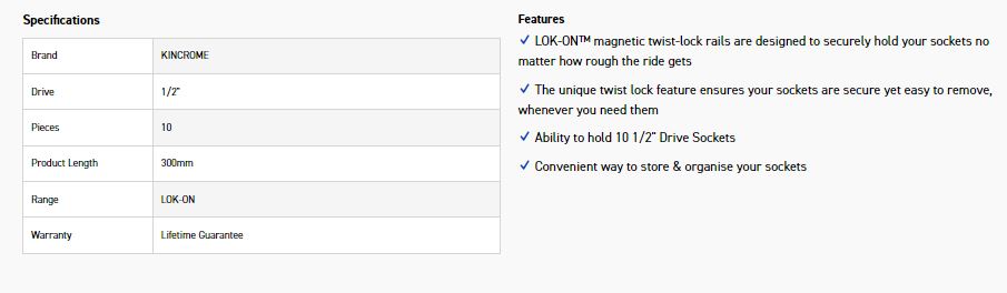 LOK-ON™ magnetic twist-lock rails are designed to securely hold your sockets no matter how rough the ride gets