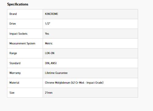 KINCROME K27113 LOKON IMPACT SKT 1/2DRV 21MM