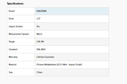 KINCROME K27129 LOKON IMP SKT DEEP 1/2DRV 17MM