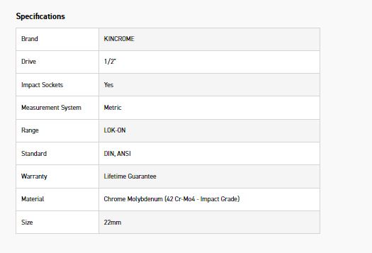 KINCROME K27134 LOKON IMP SKT DEEP 1/2DRV 22MM