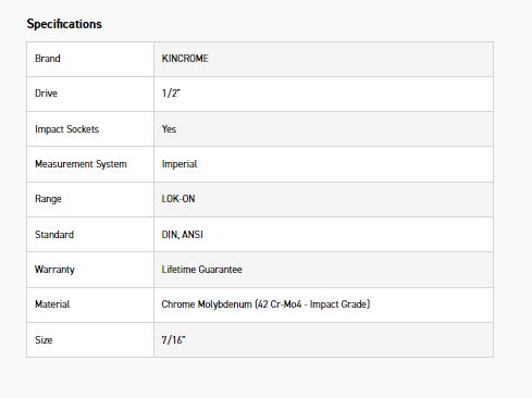 KINCROME K27142 LOKON IMPACT SKT 1/2DRV 7/16