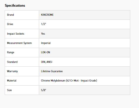 KINCROME K27145 LOKON IMPACT SKT 1/2DRV 5/8
