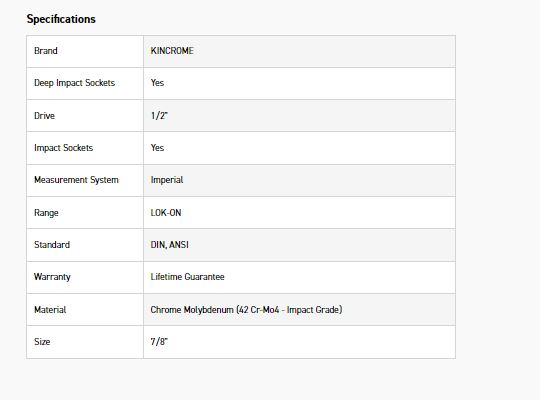 KINCROME K27165 LOKON IMP SKT DEEP 1/2DRV 7/8