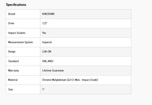 All LOK-ON™ Impact Sockets are manufactured from 42CrMo4. Chrome Molybdenum is an industrial grade material designed for impact and extreme torque applications. Standard 50bv30 CrV sockets are not designed for impact use and may shatter and cause personal injury if used for impact. LOK-ON™ Impact Sockets are finished in black phosphate for superior corrosion protection and are stamped and laser etched for easy size identification. LOK-ON™ Impact Sockets will perform better, last longer, save time, reduce wear and replace the need for fastener extraction tools.