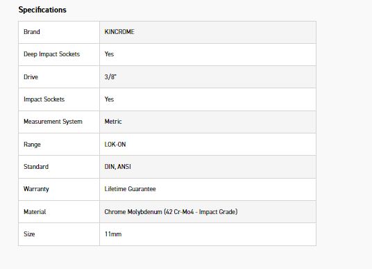 KINCROME K27183 LOKON IMP SKT DEEP 3/8DRV 11MM