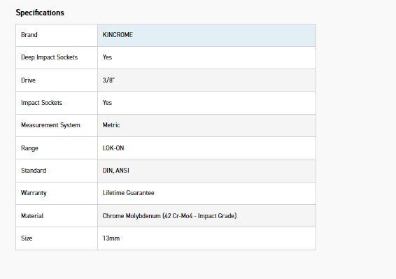 KINCROME K27185 LOKON IMP SKT DEEP 3/8DRV 13MM