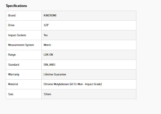 KINCROME K27201 LOKON IMPACT SKT 3/8DRV 12MM