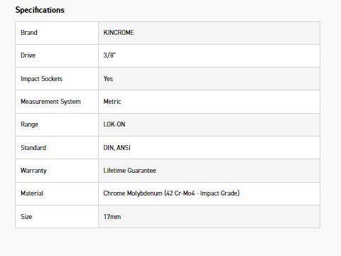 KINCROME K27206 LOKON IMPACT SKT 3/8DRV 17MM