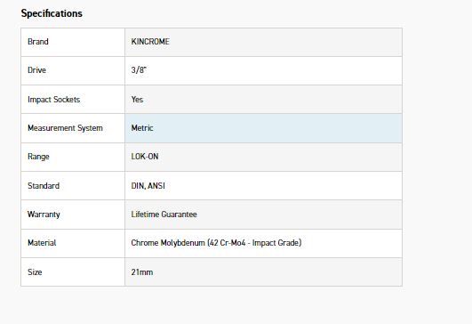 KINCROME K27210 LOKON IMPACT SKT 3/8DRV 21MM