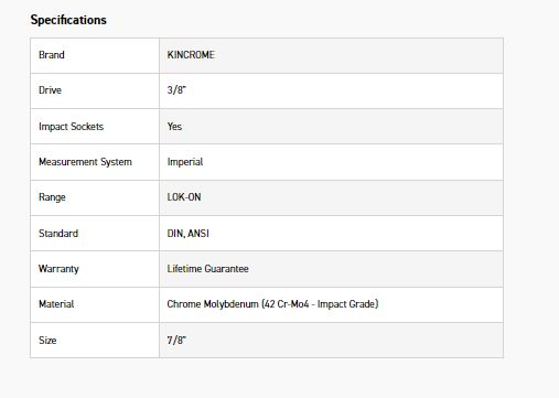 All LOK-ON™ Impact Sockets are manufactured from 42CrMo4. Chrome Molybdenum is an industrial grade material designed for impact and extreme torque applications. Standard 50bv30 CrV sockets are not designed for impact use and may shatter and cause personal injury if used for impact. LOK-ON™ Impact Sockets are finished in black phosphate for superior corrosion protection and are stamped and laser etched for easy size identification. LOK-ON™ Impact Sockets will perform better, last longer, save time, reduce wear and replace the need for fastener extraction tools.