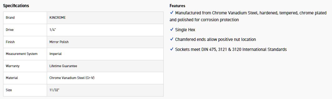 KINCROME K2818 SOCKET 1/4DR 11/32 (MP)