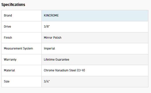 KINCROME K2854 SOCKET 3/8DR 3/4 (MP)