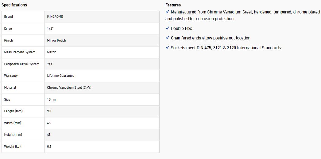 KINCROME K2862 SOCKET 1/2DR 10MM (MP)