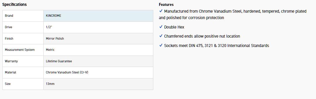 KINCROME K2865 SOCKET 1/2DR 13MM (MP)