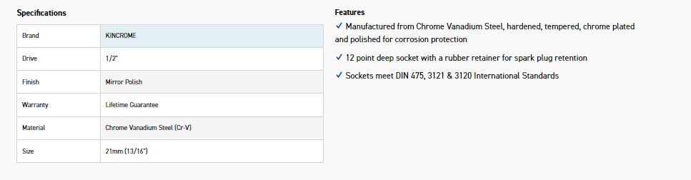 KINCROME K2954 SKT SPKPLG 1/2D 13/16 21MM(MP)