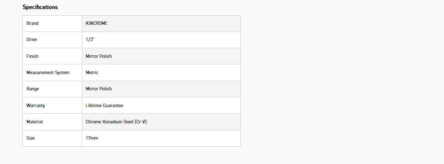 Kincrome’s 1/2″ Deep range of Sockets is perfect for the fastening of nuts and bolts in and around the workshop or home. The range includes individual socks in both metric 8mm to 24mm and imperial 3/8″ to 1 1/8″ sizes. The deep socket range is ideal for hard to reach places or nuts and bolts with longer threads. This range is complimented with an array of accessories including adapters, extension bars and ratchet handle options.