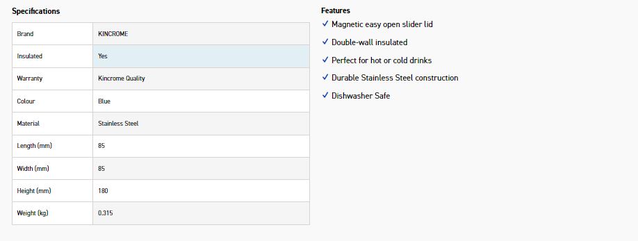 The Kincrome tumbler is the perfect companion for the worksite or the office, keeping all-day hot and cold retention ensuring you have the right temperature for the days work. Constructed from stainless steel the tumblers are also double-wall insulated and includes a magnetic easy open slider lid which helps you keep your tumbler clean.