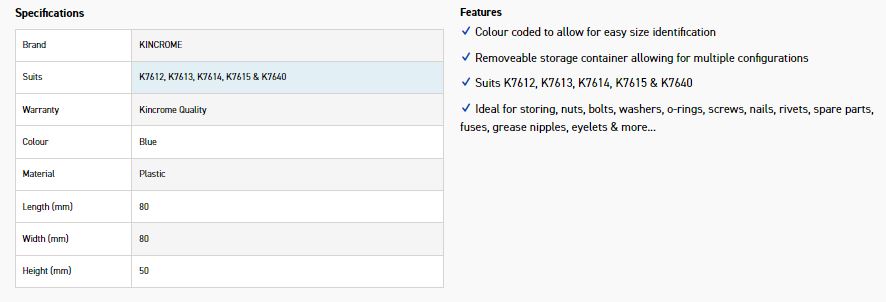 Ideal for storing, nuts, bolts, washers, o-rings, screws, nails, rivets, spare parts, fuses, grease nipples, eyelets & more…