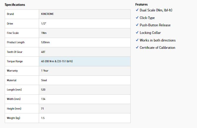 The Kincrome Dual Way Click-Type Torque Wrenches are capable of applying torque settings in BOTH directions with a certified accuracy of +/-4%. They feature Dual Scale measurement (Nm & lbf-ft) and a convenient locking collar to easily set the desired amount of torque. Each unit is individually calibrated, certified and housed within a blow mould case, which is internally layered with EVA padding to keep your Torque Wrench protected (EVA excluded from 3/4″ & 1″ models). With a 1 Year Warranty, we guarantee market-leading quality for the new range of Dual Way Click-Type Torque Wrenches.