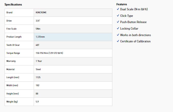 KINCROME K8503 3/4″ TORQUE WRENCH 150-750Nm