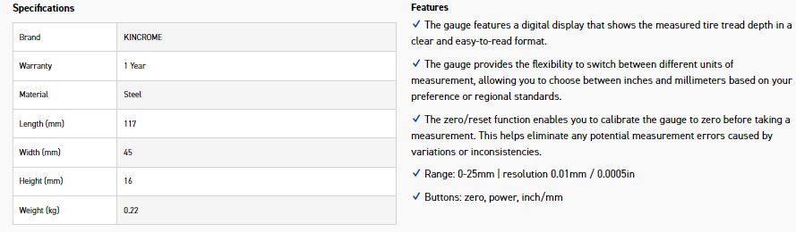 KINCROME K8640 DIGITAL TYRE DEPTH GAUGE