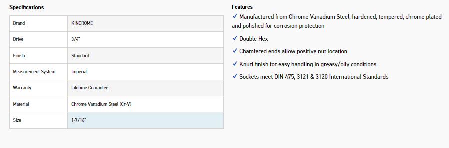 KINCROME KC121C SOCKET 3/4 DRV 1.7/16″
