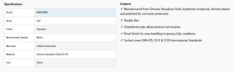 KINCROME KC134C SOCKET 3/4 DRV 29MM