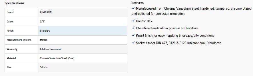 KINCROME KC135C SOCKET 3/4 DRV 30MM