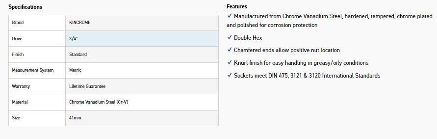KINCROME KC140C SOCKET 3/4 DRV 41MM