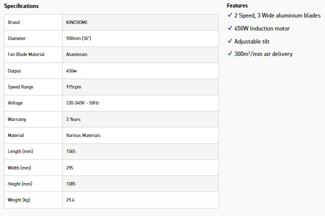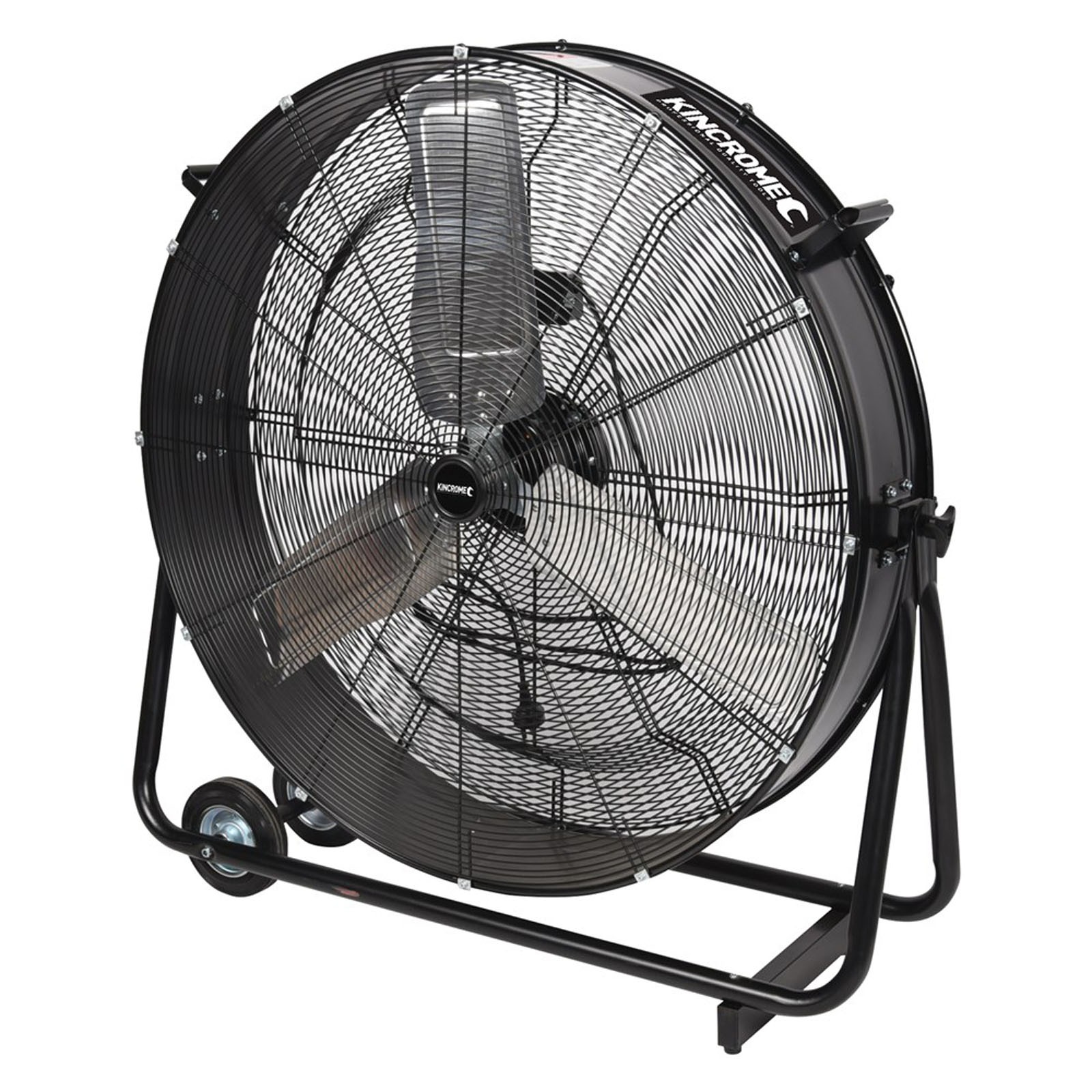 The 900mm (36”) Industrial Mobile Drum Fan is packed with features to assist and help you get the job done comfortably. Features such as an energy efficient induction motor, 2 speed switch, high velocity air flow, heavy duty constructed frames, drum & safety grills, 3 wide aluminium blades, tiltable drum & wheels to make it easy to manoeuvre around the workplace. With a whopping air velocity of 300m³ per minute this unit is perfectly suited to ventilating small to medium areas inside. The tiltable drum body enables you to position the fan where needed and tilt the fan body allowing you to ventilate almost any area you need. The heavy duty wheels mean you can roll or manoeuvre the fan from the workshop, shed, garage or work vehicle straight to where you need to ventilate, avoiding the need to carry a heavy fan leading to potential injury. The fan comes fully assembled and ready to go straight from the box which means no down time having to assemble it once you get home. The entire KINCROME fan range complies to all safety and standards requirements including testing conducted to tropical class T clause. Kincrome Industrial fans are built tough and will last the distance when using them out in the field.