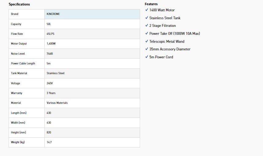 KINCROME KP704 VACUUM W&D 50LT S/S TANK PTO