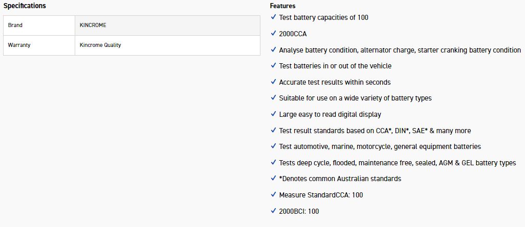 KINCROME KP8501 BATTERY TESTER ANALYZER 12V