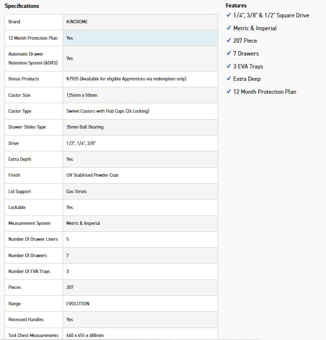 • EVOLUTION Tool Chest 7 Drawer 26" – K7917