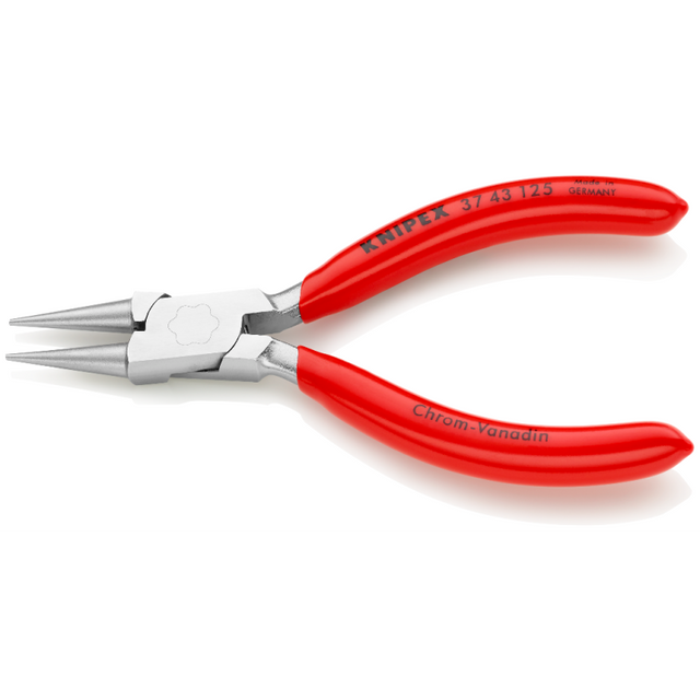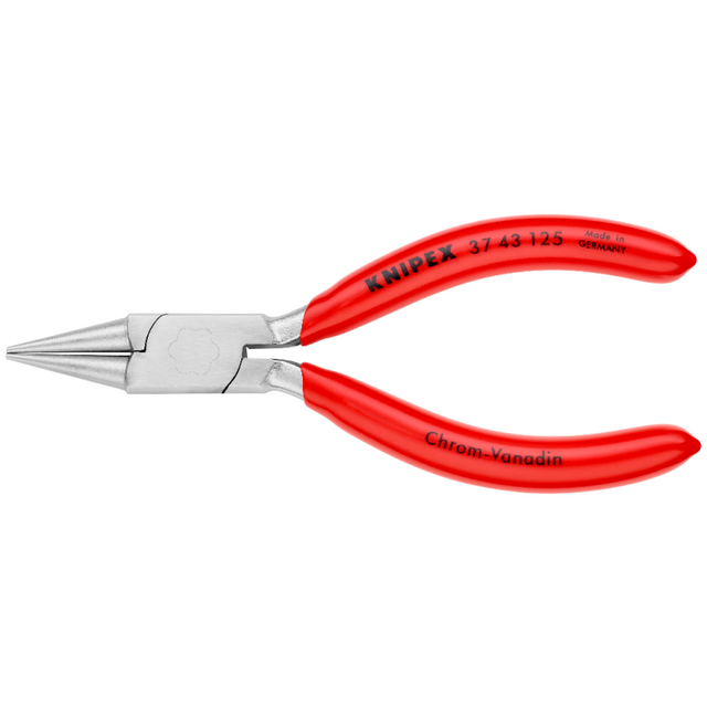 The KNIPEX Electronics Gripping Pliers 37 43 125 are precision-engineered tools designed for ultra-fine assembly tasks, including electronics and fine mechanics work. These pliers feature smooth gripping surfaces and round, pointed jaws, making them ideal for gripping, holding, bending, and adjusting delicate components. Crafted from forged, oil-hardened high-grade special tool steel with a chrome-plated finish, these pliers provide durability and resistance to wear. Their compact design ensures ease of handling, and the plastic-coated handles enhance user comfort.
