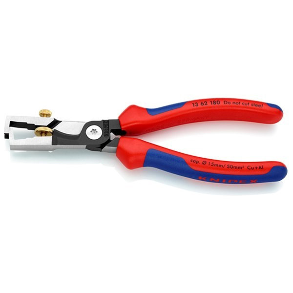 Graduated jaw provides a visual orientation aid when stripping wire in standard lengths (11 mm and 16 mm)