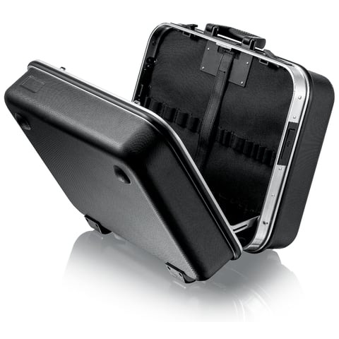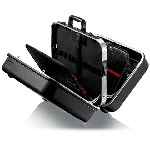 Base tray, can be fixed by press button, height 58 mm, can be subdivided by flexible inserts; cover plate with six large compartments