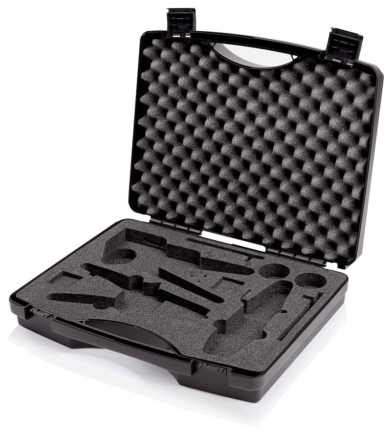 Foam insert with recesses for tools, 2 crimping dies and 2 locators