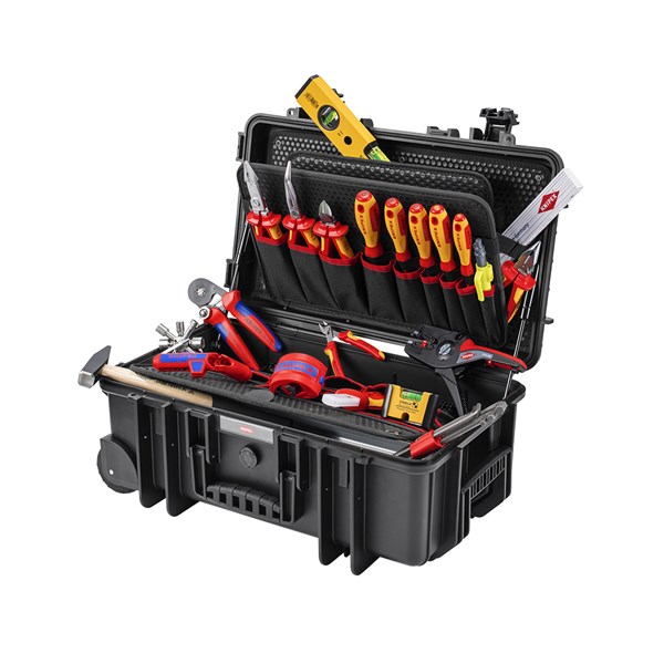 Equipped with 16 KNIPEX tools, a total of 22 brand tools, partly VDE-tested according to DIN EN 60900