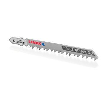 Lenox® Jig Saw Blade, Fast Cutting High Strength, 4 in Length, 1/4 in Width, 0.058 in Thickness, 6, 1/4 to 2 in Cutting Depth, T-Shank Shank, Bi-Metal Body, Applicable Materials: Composite, Hard Wood and Soft Wood